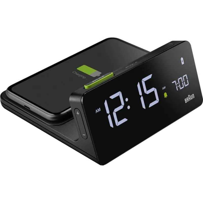 Ξυπνητήρι-Ψηφιακό ρολόι BRAUN σε μαύρο χρώμα με ασύρματο φορτιστή κινητών.