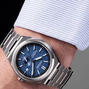 Ανδρικό ρολόι CITIZEN Automatic Titanium με μπλε καντράν και ασημί μπρασελέ.