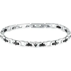 Ανδρικό βραχιόλι MASERATI από ανοξείδωτο ατσάλι. To βραχιόλι είναι ασημένιου και μαύρου χρώματος, με μαύρη τρίαινα(18+3,5cm).