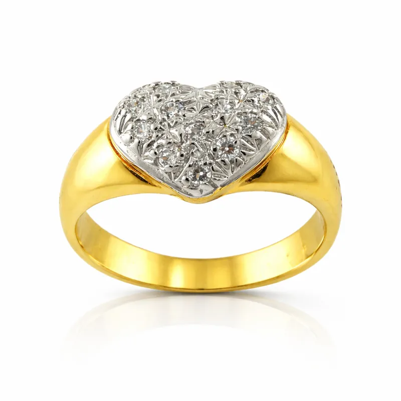 Χρυσό δαχτυλίδι 14 καρατίων με λευκόχρυση καρδιά από πέτρες ζιργκόν.